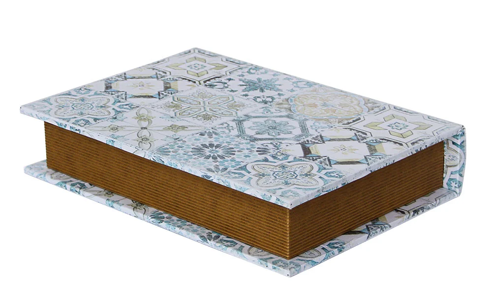 Questa cassetta portaoggetti “a forma di libro” è realizzata in solido legno e presenta un accattivante design esterno in stile retrò con motivi moreschi. Ideale per riporre e conservare piccoli oggetti di ogni tipo. Queste scatole portaoggetti in legno di alta qualità sembrano veri libri antichi e si integrano discretamente nella libreria: ideali per nascondere gioielli, denaro, chiavi o piccoli oggetti da collezione. La scatola può essere semplicemente riposta nella libreria.