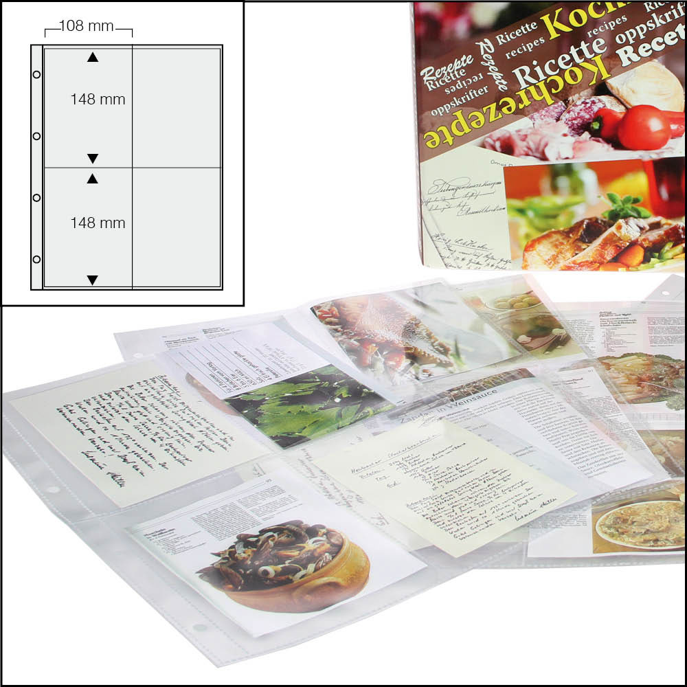 Qui ogni idea di cucina trova un posto - robusto album. - Meccanismo a 4 anelli di alta qualità. - Incl. 10 fogli di cartone e 15 robusti fogli trasparente con diverse divisioni per ca. 150 ricette. - Espandibile. - Formato dell'album circa 29 x 32,5 x 6 cm.