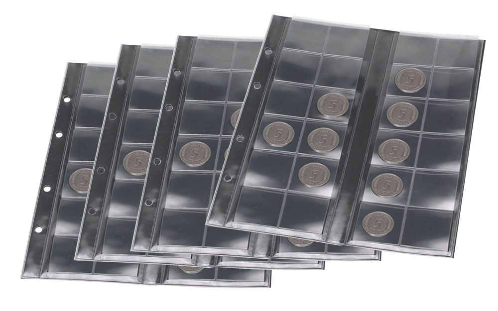ARTline-Album per monete per un totale di 134 monete di diverso diametro - completo di 4 fogli Cod. art. 7391- 7394 con taschine portamonete integrate in plastica libera da ammorbidenti - Con foglio intermedio nero - ampliabileFormato album: 240 x 275 x 45 mm