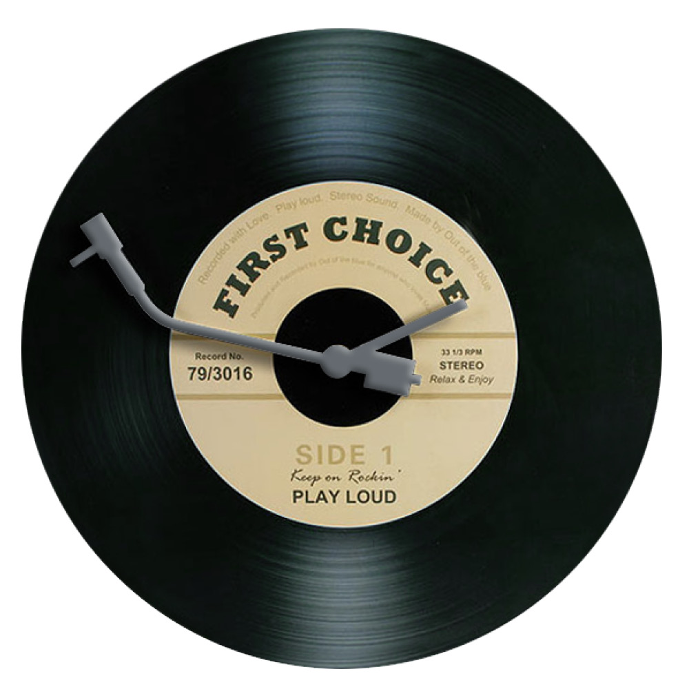 Un record per il tuo muro! L'orologio da parete di tendenza in stile retrò è costituito da una lastra di vetro, rivestita da dietro con un motivo a disco. La lancetta dell'orologio, a forma di braccio di registrazione girevole, completa perfettamente il design dell'orologio. - Dimensioni: Ø ca. 30 cm