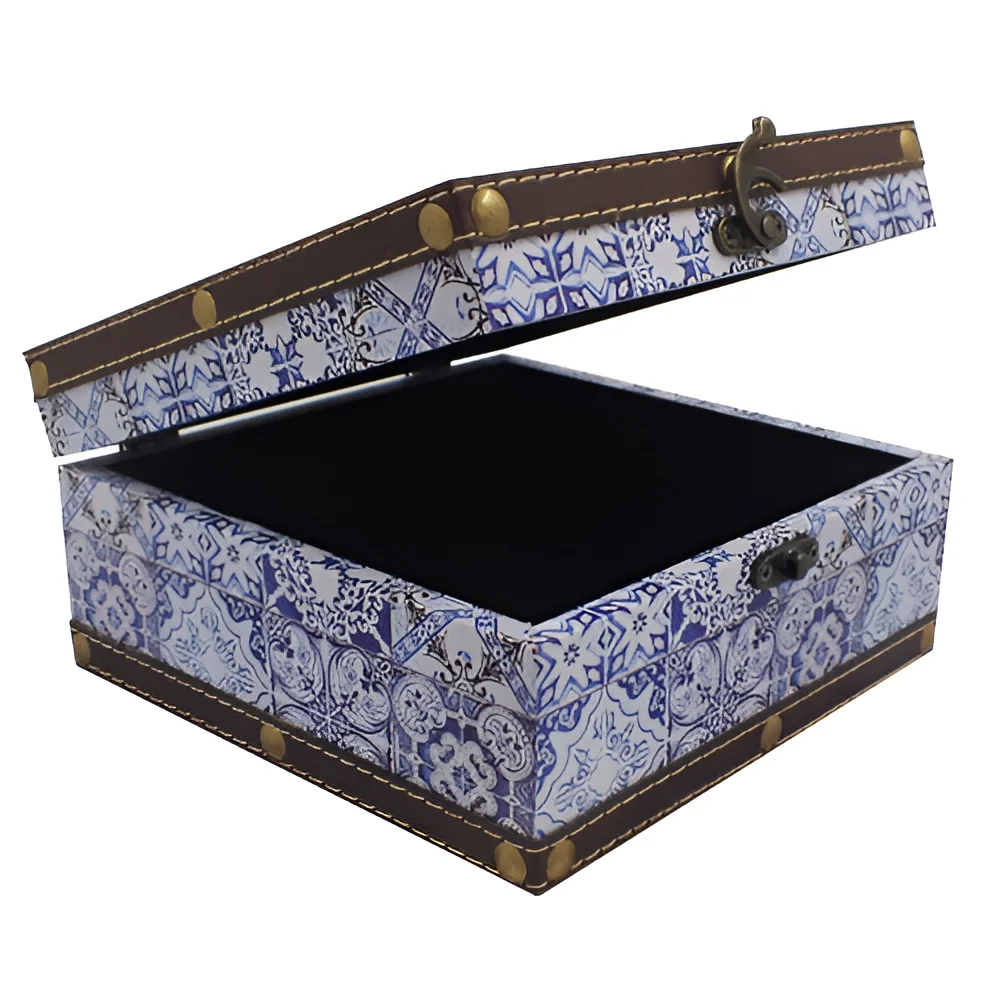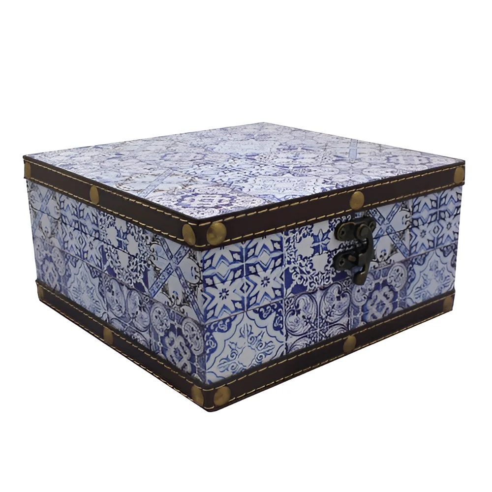 Robusta scatola in cartone rivestita in tessuto con angoli in metallo